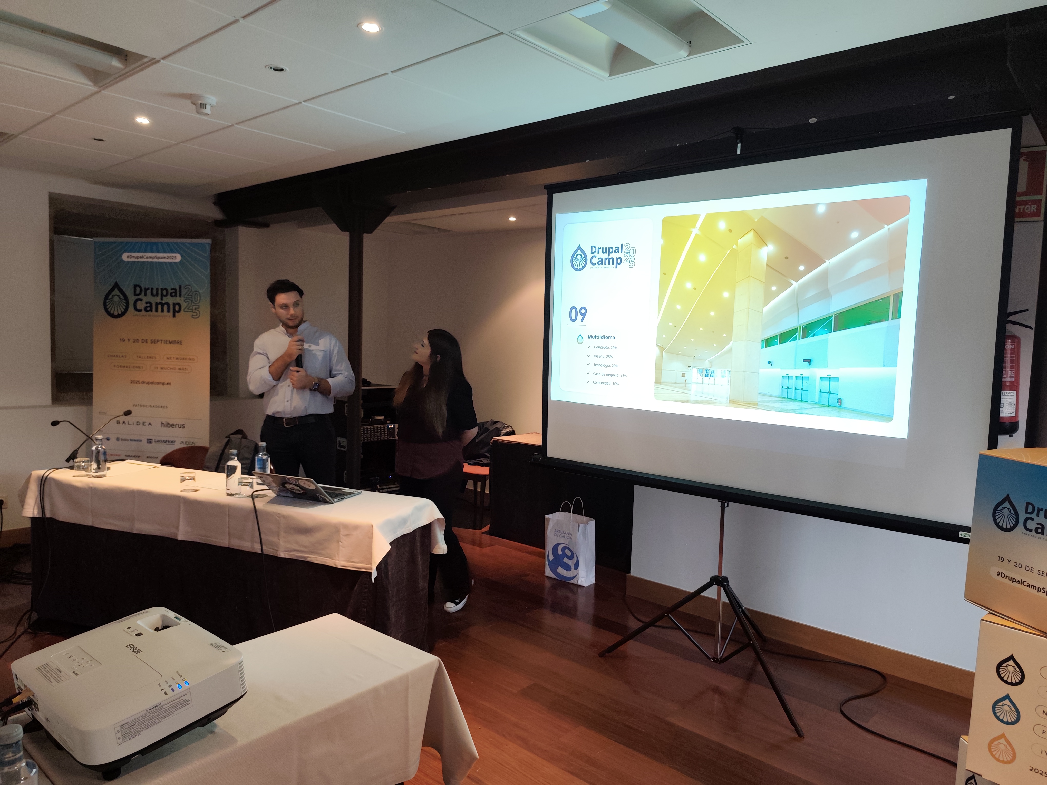 La gala fue presentada por Sergio Elvira, presidente de la Asociación Española de Drupal, y Montaña Franco, secretaria de la asociación. Ambos destacaron el papel fundamental de la comunidad en el crecimiento de Drupal en España y agradecieron la participación de todos los asistentes, desarrolladores, diseñadores, gestores de proyectos y clientes.